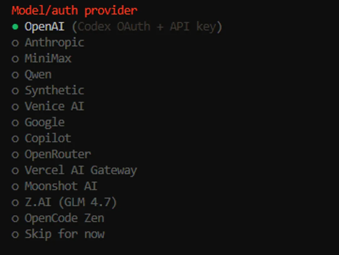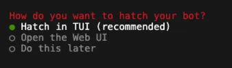 成功后,我们进入到配置环节,开始为openclaw配置各种东西。