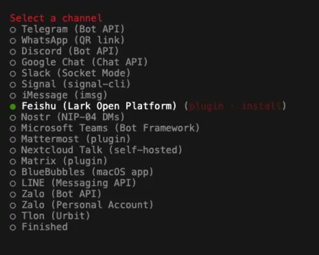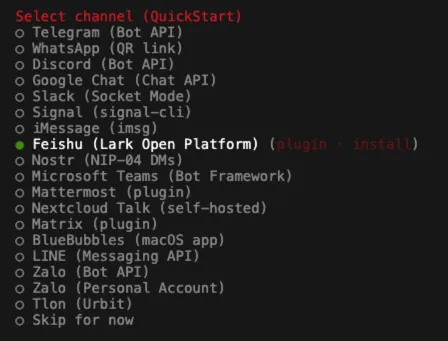 之后要关联聊天软件,主要使用一款聊天软件和Clawdbot进行对话。