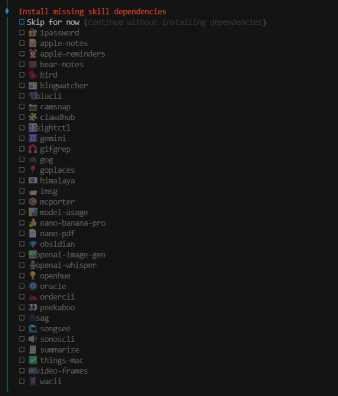 blogwatcher,clawhub,camsnap,github,mcporter,model-usage,nano-banana-pro,nano-pdf,summarize。