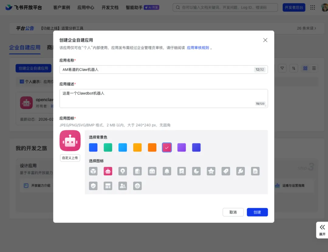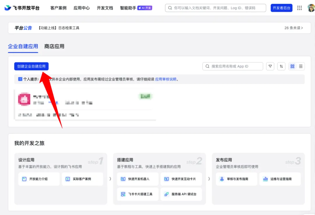 在右上角点击进入开发者后台。