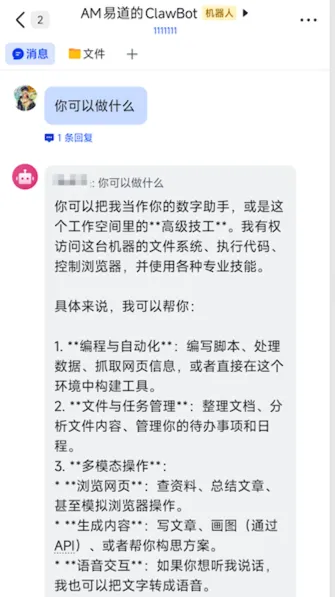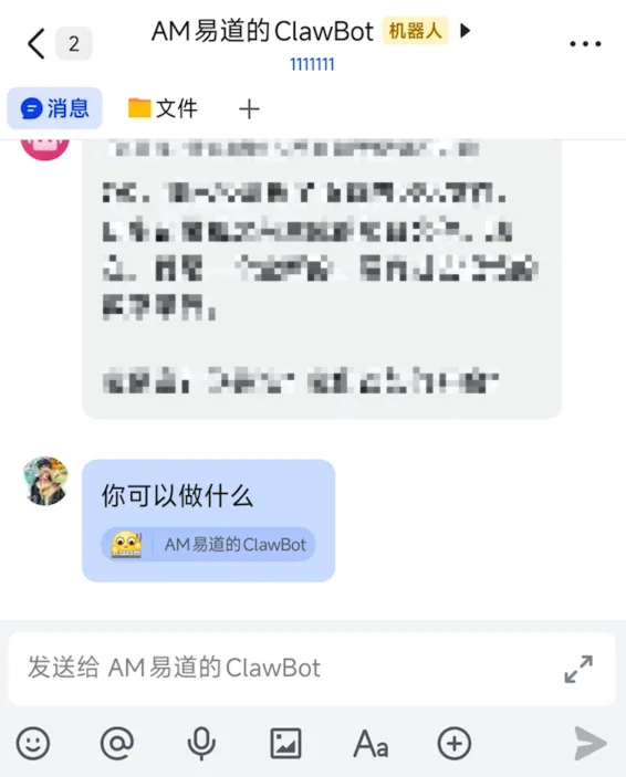 在飞书上直接跟它说:
