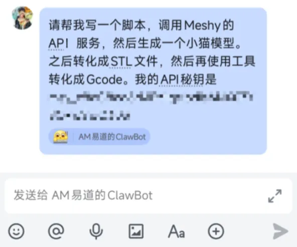 然后,只需要在飞书上把STL扔给OpenClaw,说一句:
