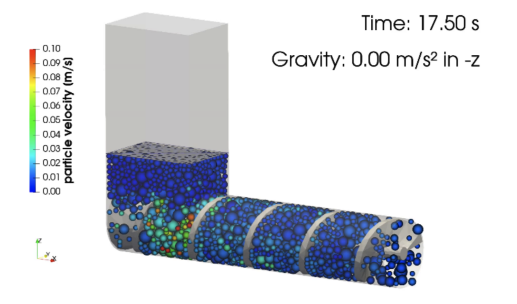 模拟结果显示,螺杆输送机在两种情况下可以在零重力下工作:要么填充率非常高,要么转速非常快。