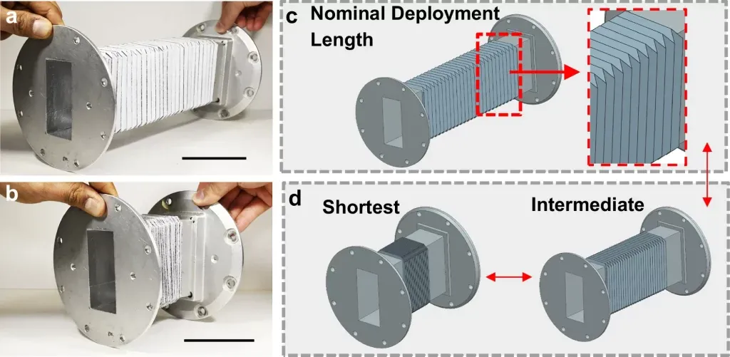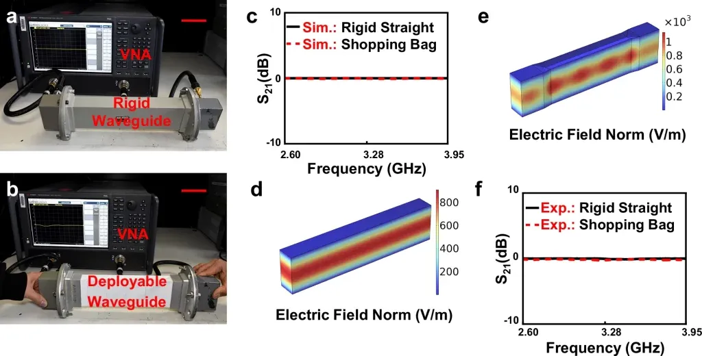 研究团队指出,此类折纸波导尤其适用于波导尺寸较大且收纳效率至关重要的场景,如卫星通信和可重构天线系统。而在小型设备中,传统刚性波导仍更具实用性。