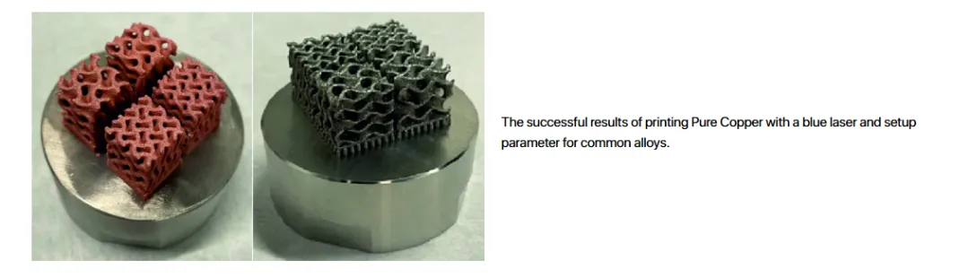 铜只能做到65-75%致密度,这个水平只能说是烧结态,离真正的LPBF零件还有距离。