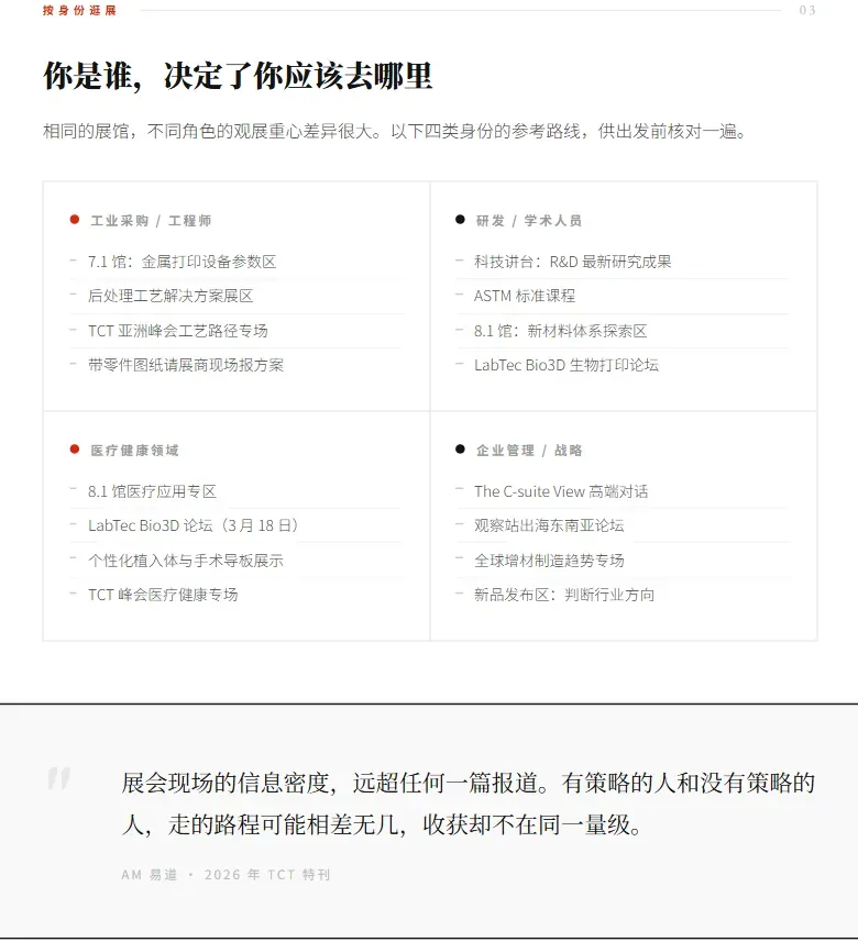 展会开幕前一周,可以打开 AI,把TCT官方发布的展商名录和展区分布喂给它,告诉它我的行业背景和这次参展的核心目的。