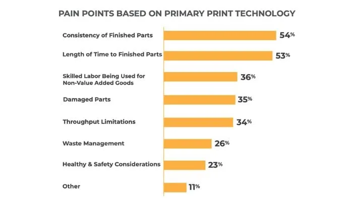 对于大多数受访公司,后处理费用占增材制造总费用的比例不到25%,这表明它目前并非优先事项。