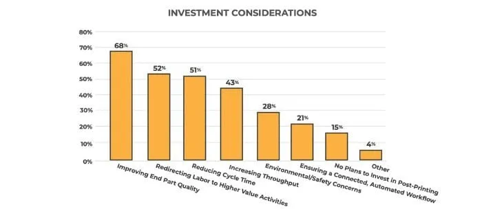 报告指出,随着行业日益聚焦于可持续性、安全性和健康,后处理环节的关注点正随着增材制造产量的增长而演变。