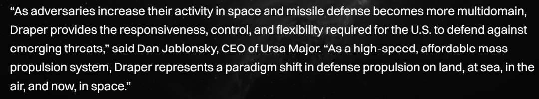 CEO Dan Jablonsky表示:"随着对手在太空的活动增加,导弹防御变得更加多领域化,Draper提供了美国应对新兴威胁所需的响应性、控制力和灵活性"。
