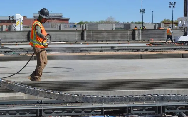 现场有十台Vulcan打印机,正在铺设特殊配方的混凝土混合物,以薄的连续层进行打印。ICON公司此前于2021年为德克萨斯州国民警卫队的一个训练场建造过类似的结构。